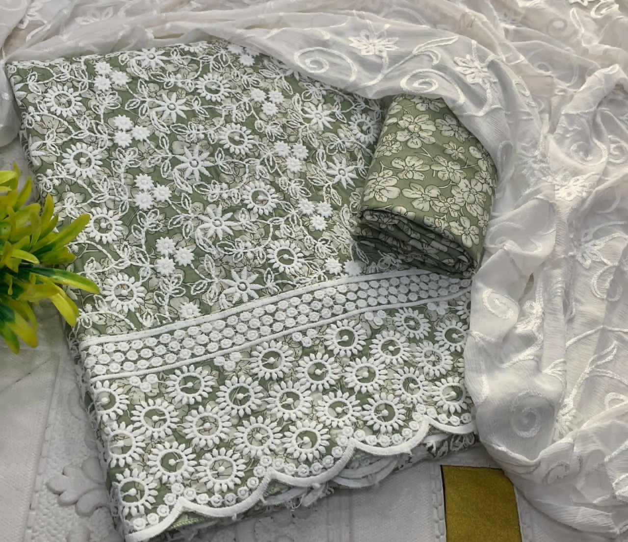 👗TOP: Pure Cotton Print with Chicken Kari Cut Work & Daman